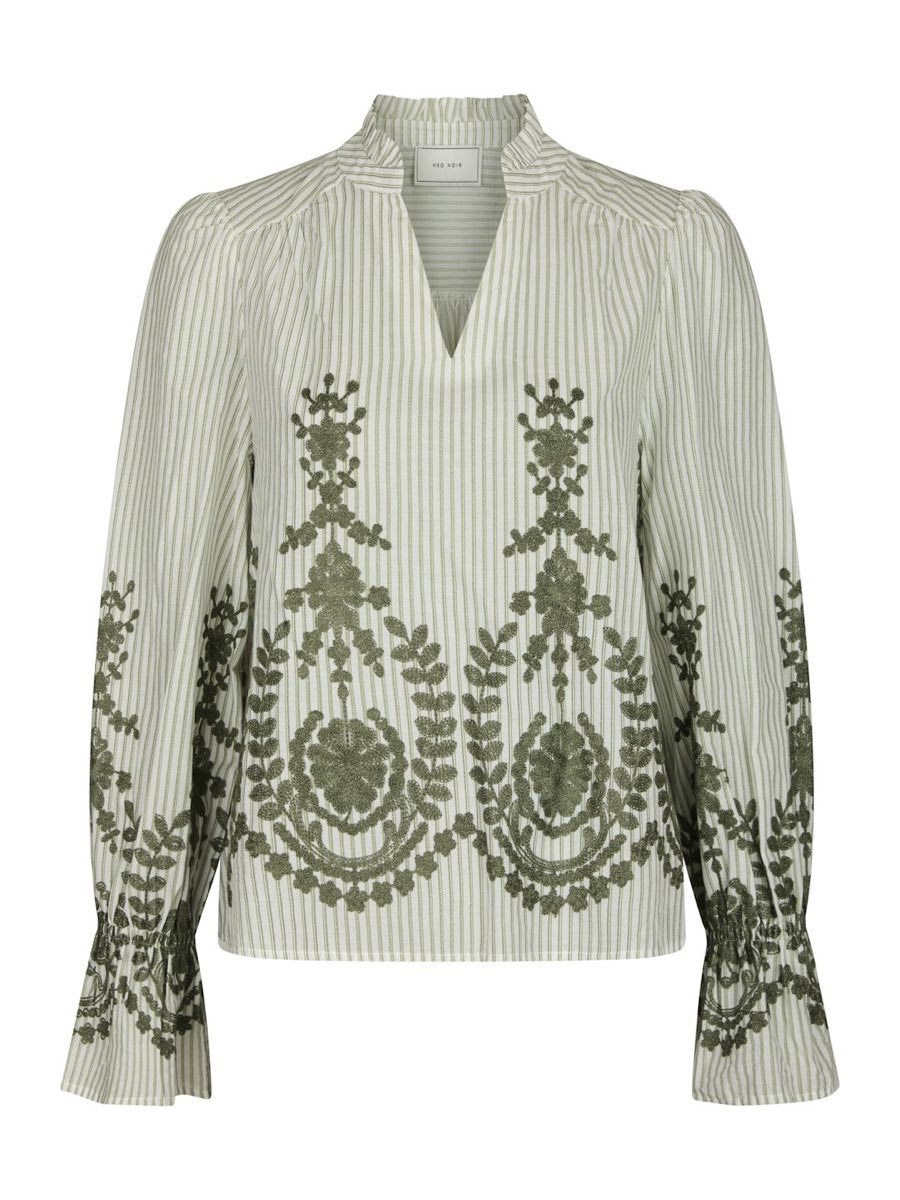 Deze groene dames top van Neo Noir is perfect voor de zomer van 2026. De top heeft een V-hals en lange mouwen, wat zorgt voor een elegante uitstraling. De merkstijl van Neo Noir is duidelijk terug te zien in deze top, met zijn vrouwelijke en trendy design. Deze top is een must-have voor elke vrouw die op zoek is naar een stijlvolle en comfortabele outfit voor de zomer.