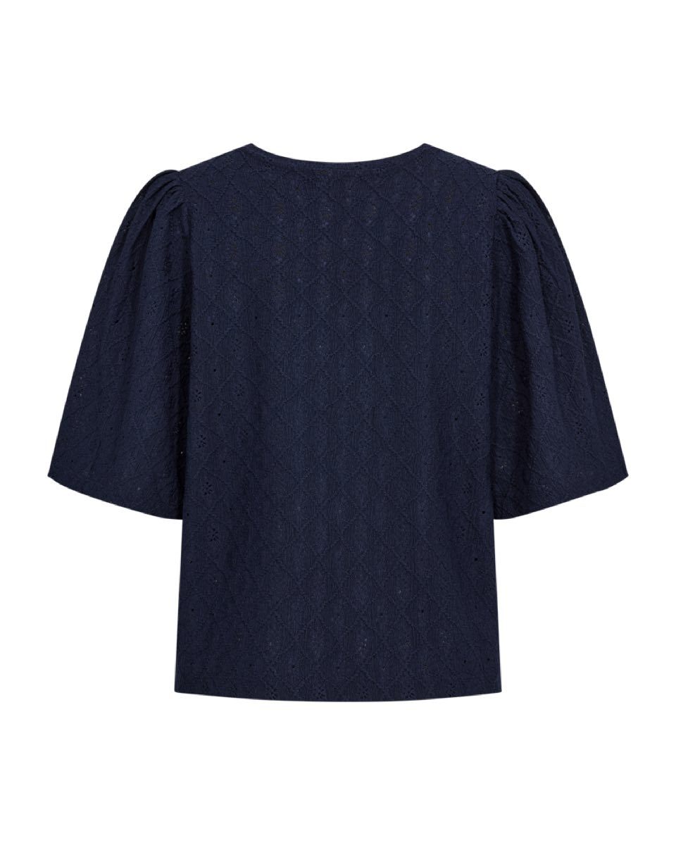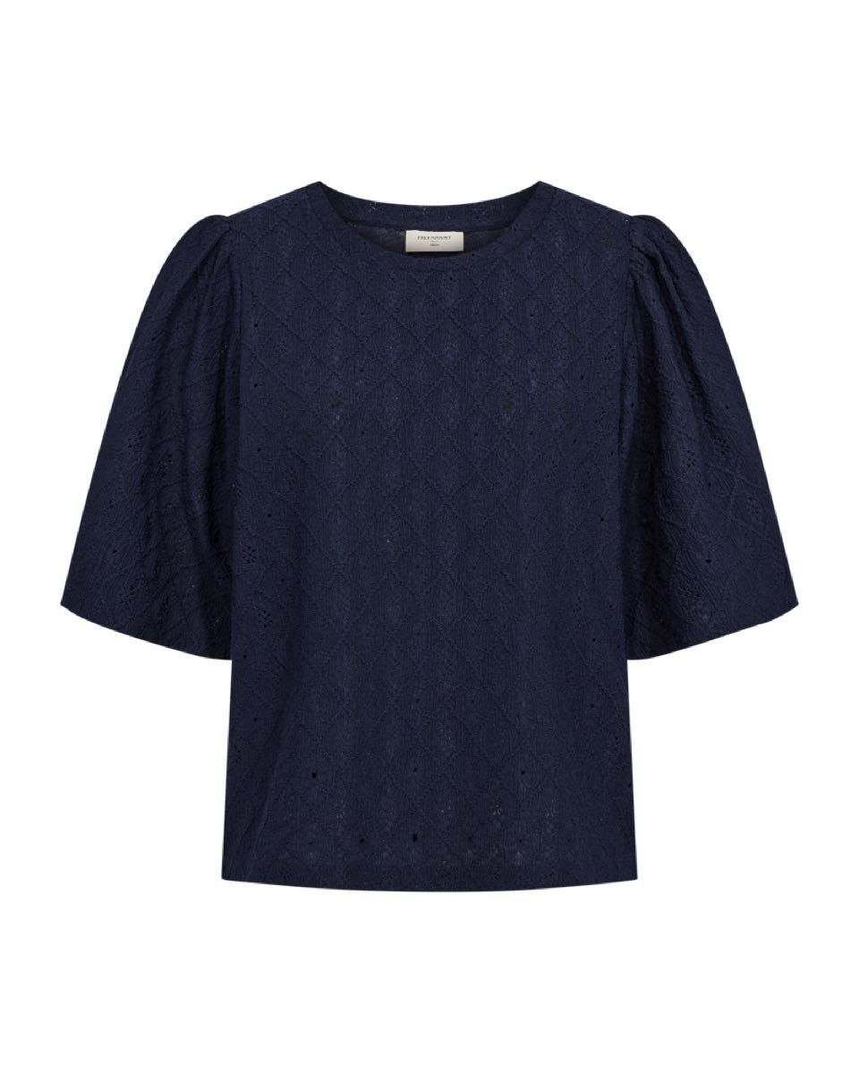 Deze blauwe dames top van het merk Freequent is perfect voor de zomer van 2026. De korte mouwen en luchtige stof maken het een ideale keuze voor warme dagen. De top heeft een vrouwelijke en trendy uitstraling, passend bij de stijl van het merk. Het is een must-have voor elke vrouw die er modieus uit wil zien tijdens het zomerseizoen.