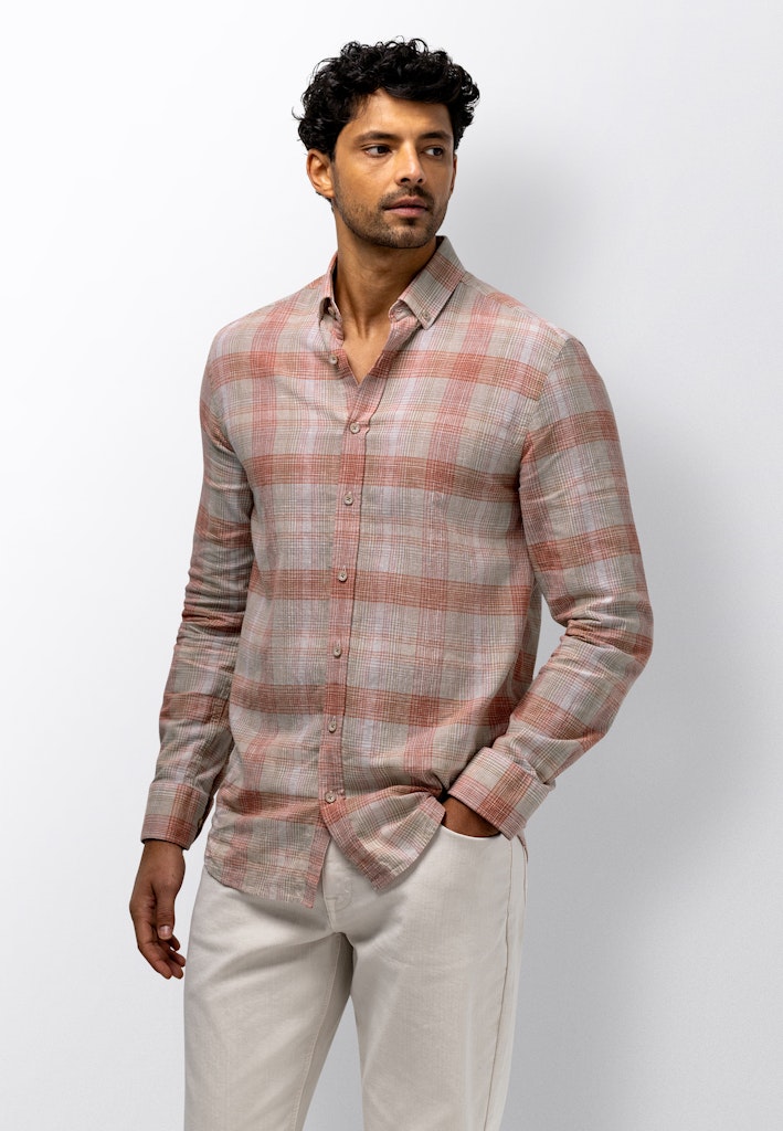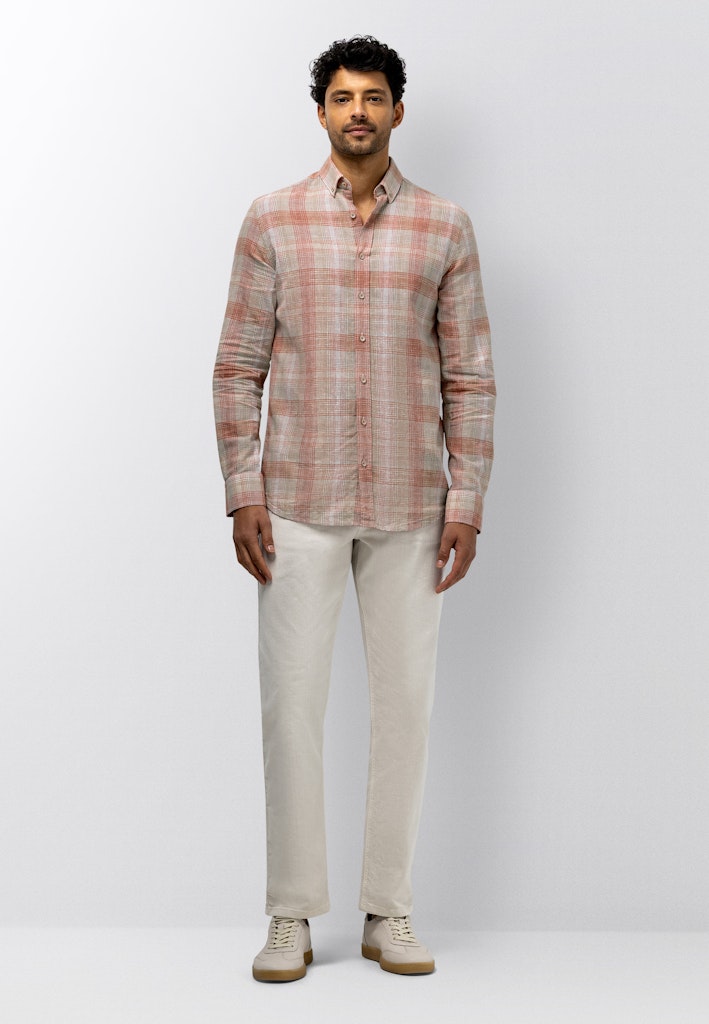 Dit beige heren overhemd van State of Art is een must-have voor elke mannelijke kledingkast. Het overhemd is gemaakt van een mix van 50% vlas en 50% katoen, waardoor het licht en ademend is voor de warme zomerdagen. De stof is van hoge kwaliteit en voelt zacht aan op de huid. Het overhemd heeft een klassieke pasvorm en is voorzien van een kraag en lange mouwen. Het merk State of Art staat bekend om zijn stijlvolle en tijdloze designs, wat ook terug te zien is in dit overhemd. Het is geschikt voor zowel formele als informele gelegenheden en kan eenvoudig gecombineerd worden met verschillende outfits. Het overhemd is gemakkelijk te onderhouden en kan in de reinigingsmachine worden gewassen met oplosmiddelen zoals perchloorethyleen en koolwaterstoffen. Met dit overhemd ben je helemaal klaar voor de zomer van 2026.